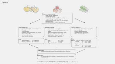 This is precisely what is clearly defined in the Schweizerische Qualitätsbestimmungen für Gemüse (quality standards for vegetables in Switzerland). These quality standards form the basis in the Swiss vegetable trade. In some cases, certain buyers also work with their own more advanced standards for size, minimum requirements or individual quality standards. The Schweizerische Qualitätsbestimmungen für Gemüse is thus not a state requirement, but rather an agreement between the trading partners. They apply to both conventional goods and organic products and so the idea that poorer quality is generally accepted in the organic segment is therefore not a correct statement.
