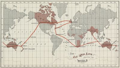 The rapid expansion, accumulation, and concentration of infrastructure in the hands of a few US companies are altering global power dynamics and forging transnational monopolies. This concentration does not merely encompass control over infrastructures; it entails a concentration of economic power, resource extraction, and data domination, alongside epistemic domination. Parallels with past colonial empires are evident. The first undersea telegraph cables were laid by the British Empire. According to a secret memo from the Imperial Defence Committee in 1910, “The maintenance of submarine cable communications throughout the world in time of war is of the highest strategic and commercial interests of every portion of the British Empire.” The most striking example is the system known as the “All Red Line,” which connected the colonised territories of the United Kingdom and enforced control. Maps from that era frequently depicted the British Empire in red, with a red line connecting those territories. As argued above, backbone networks have long been understood as imperial and nationalist projects.